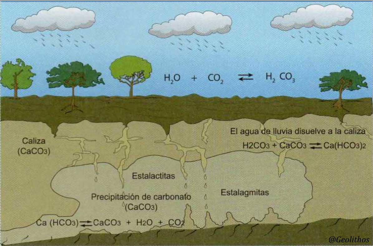 La formación de estas fascinantes estructuras, obedece al proceso de miles de año de reacciones químicas sobre la roca caliza, una roca compuesta en su gran mayoría por Carbonato de Calcio. El dióxido de carbono (CO2) presente en el aire, se disuelve con la lluvia y  produce H2CO3, el cual es ácido y capaz de disolver la roca caliza. Esta roca caliza disuelta, migra por gravedad hacia abajo mezclada con el agua. Cuando el agua gotea desde un techo, la caliza disuelta se vuelve a solidificar por liberación del Dioxido de Carbono (CO2) y comienza a formar lentamente una estalactita, la cual demora cientos de años en formarse. Se estima que para que una estalactita crezca 2,5 cm, puede requerir hasta 4.000 años.